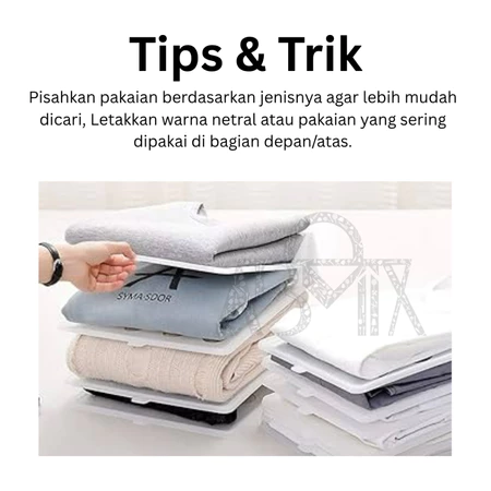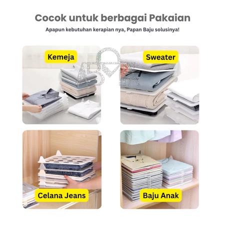 - Kegunaan: Organizer baju lipat dalam lemari/rak untuk menjaga tampilan rapi dan mudah dijangkau